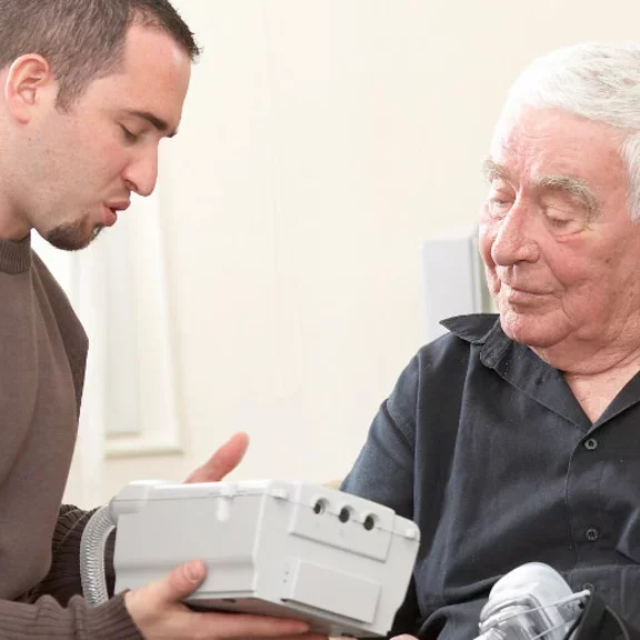 Une insuffisance respiratoire chronique se manifeste par un déficit ventilatoire entraînant un excès de CO2 et un manque d'oxygène dans le sang. Largement utilisée à l’hôpital, la Ventilation Assistée Non Invasive (VNI) à domicile est définie par l’utilisation intermittente ou continue d’un ventilateur. Elle peut être prise en charge à domicile grâce à la « chaîne de santé » qui entoure ces patients.