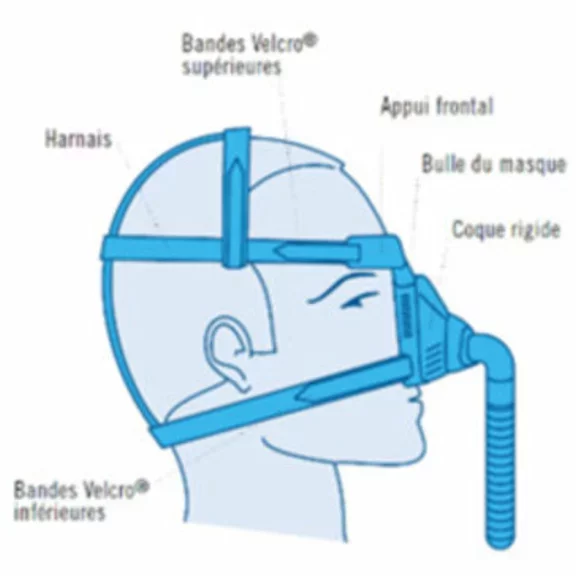 Le malade est relié à son ventilateur par l’intermédiaire d’un masque placé sur le visage ou d’un embout buccal. Le rôle de ce masque est très important puisque l’efficacité du traitement en dépend.