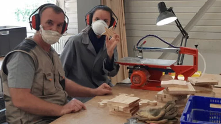 Rencontre avec La fondation des Amis de l'Atelier à l'ESAT de Châtillon (94) en octobre 2018. Reconnue d’utilité publique, elle accueille et accompagne plus de 2 800 personnes en situation de handicap mental ou psychique, au sein de ses 76 établissements. A l’occasion de Noël, les collaborateurs de Gentilly ont reçu une décoration de Noël de l’ESAT réalisée par des travailleurs en situation de handicap.